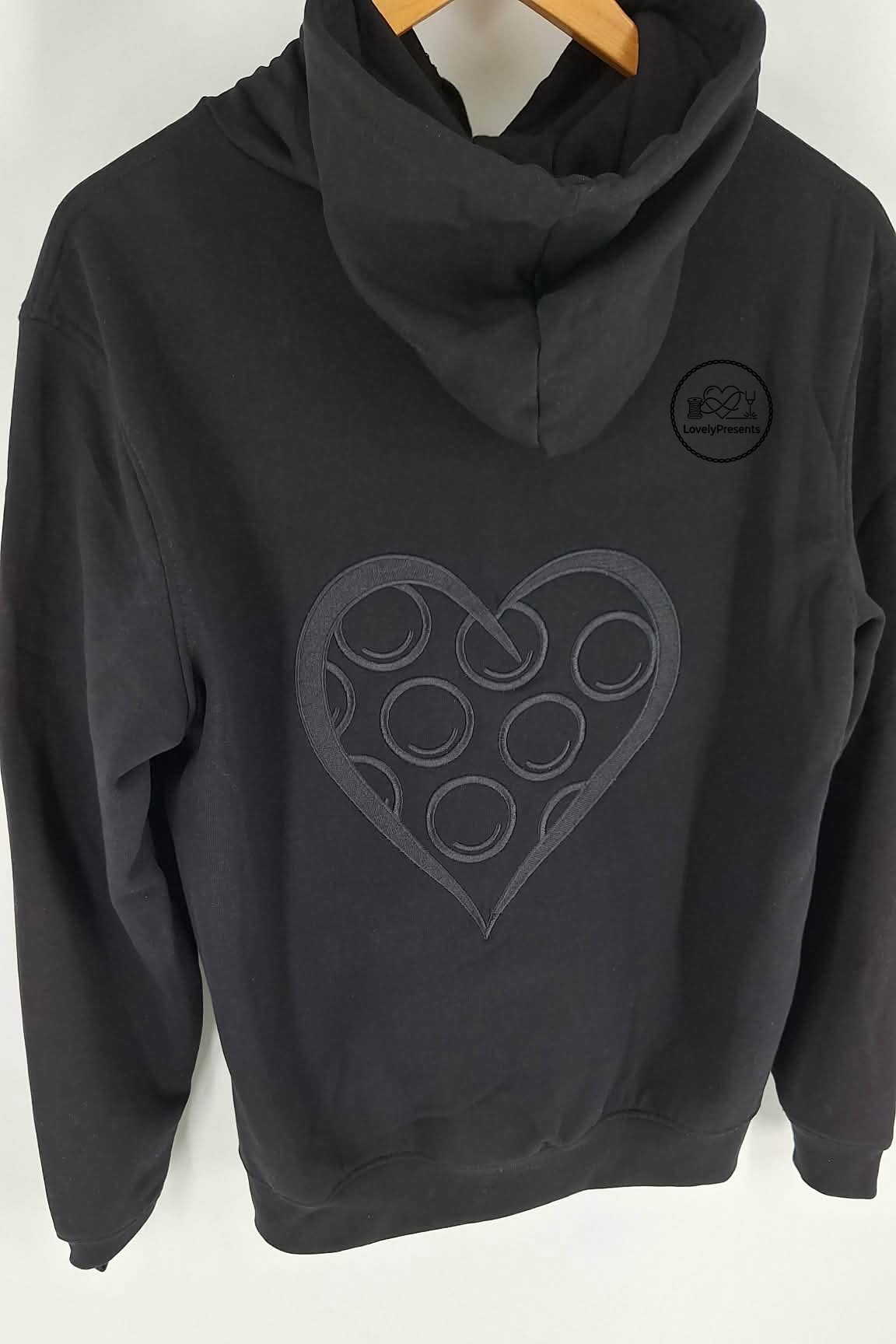 Standartmäßig wird unser dubbeherz® Hoodie auf der Rückseite mit einem (je nach Hoodie Größe) angepassten dubbeherz® in der Farbe des Hoodies bestickt.